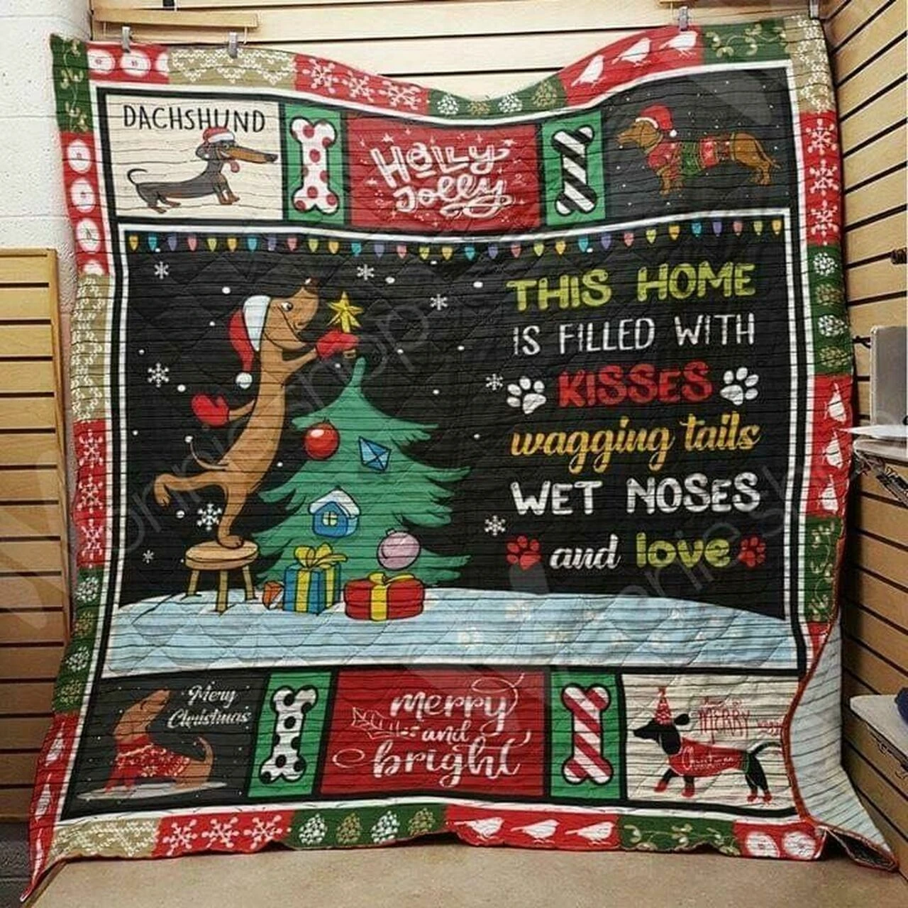 Dachshund Christmas Quilt Bedding Set With Custom Name, Great For Home Decoration And Family Gifts – Bluefink