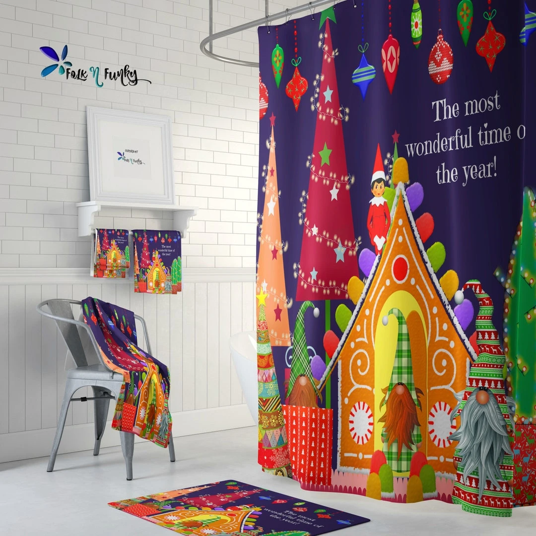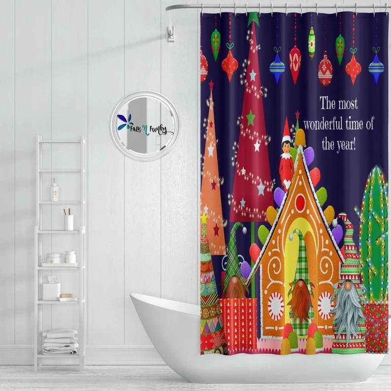 Gnomes Christmas Shower Curtain, Most Wonderful Time, Holiday Bathroom Decor – Bluefink