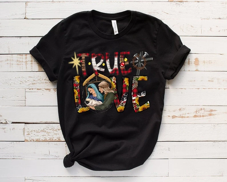 Love True Christmas T-Shirt – Bethlehem Nativity Miracle Jesus Design – Bluefink