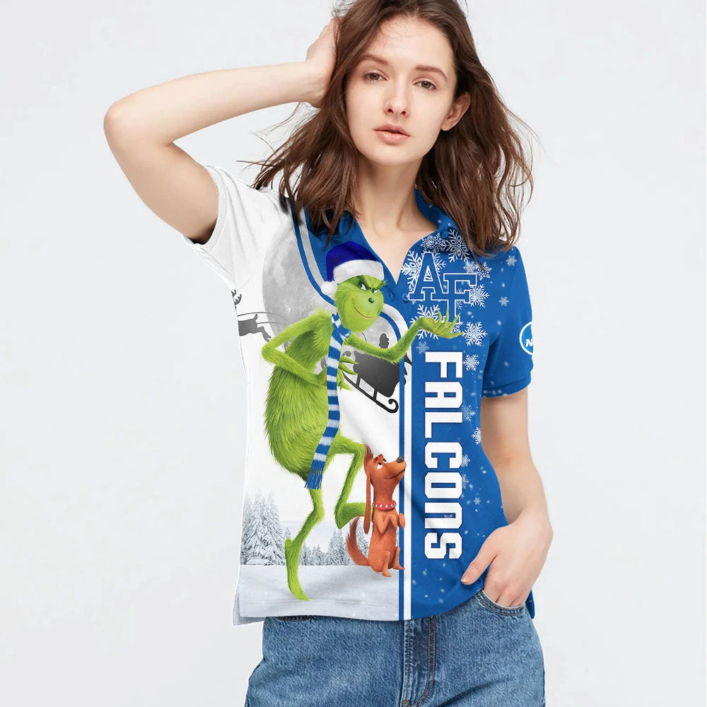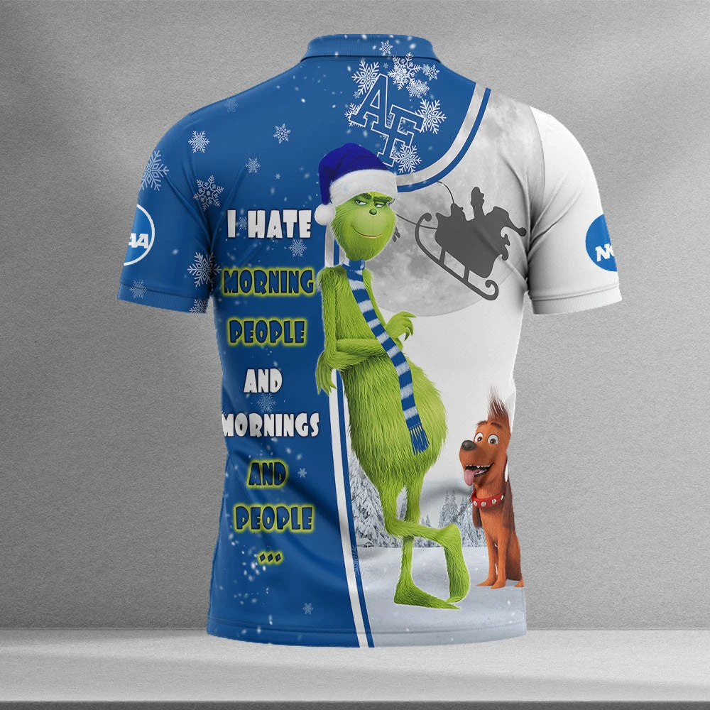 Personalized Funny Christmas The Grinch Air Force Falcons NCAA I Hate Morning People Shirt Gifts Unisex 3D Polo – Bluefink