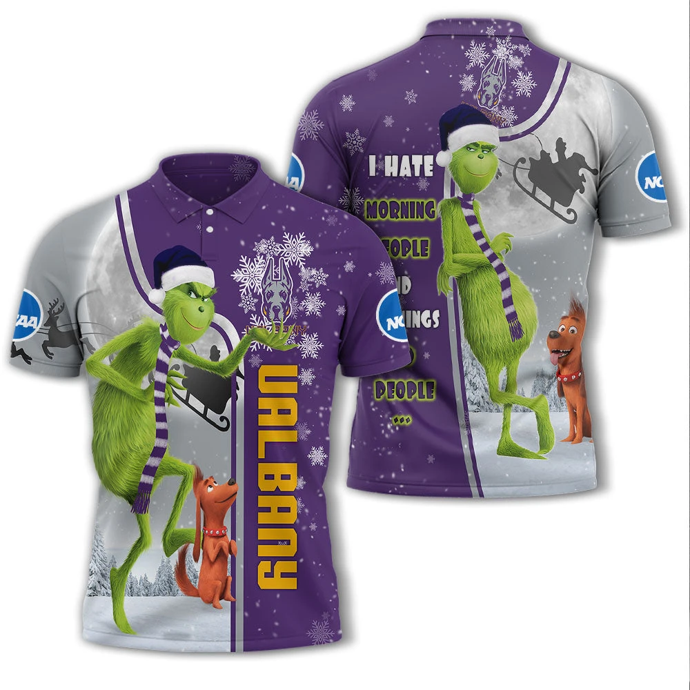Personalized Funny Christmas The Grinch Albany Great Danes NCAA I Hate Morning People Shirt Gifts Unisex 3D Polo – Bluefink