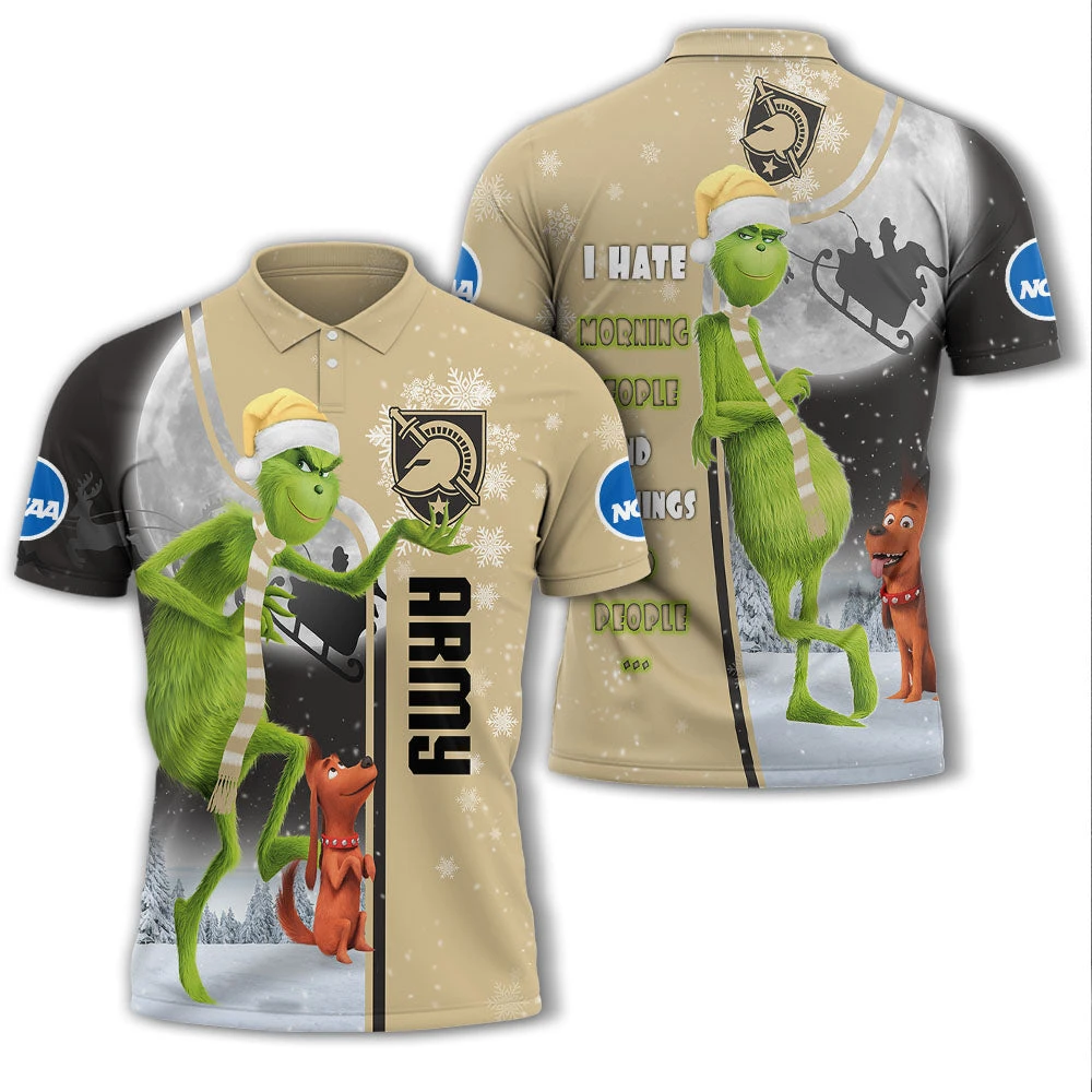Personalized Funny Christmas The Grinch Army Black Knights NCAA I Hate Morning People Shirt Gifts Unisex 3D Polo – Bluefink