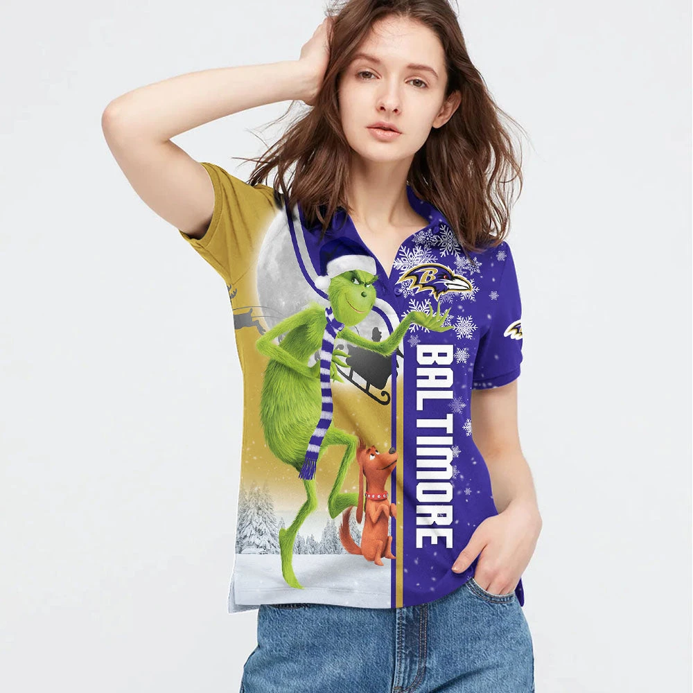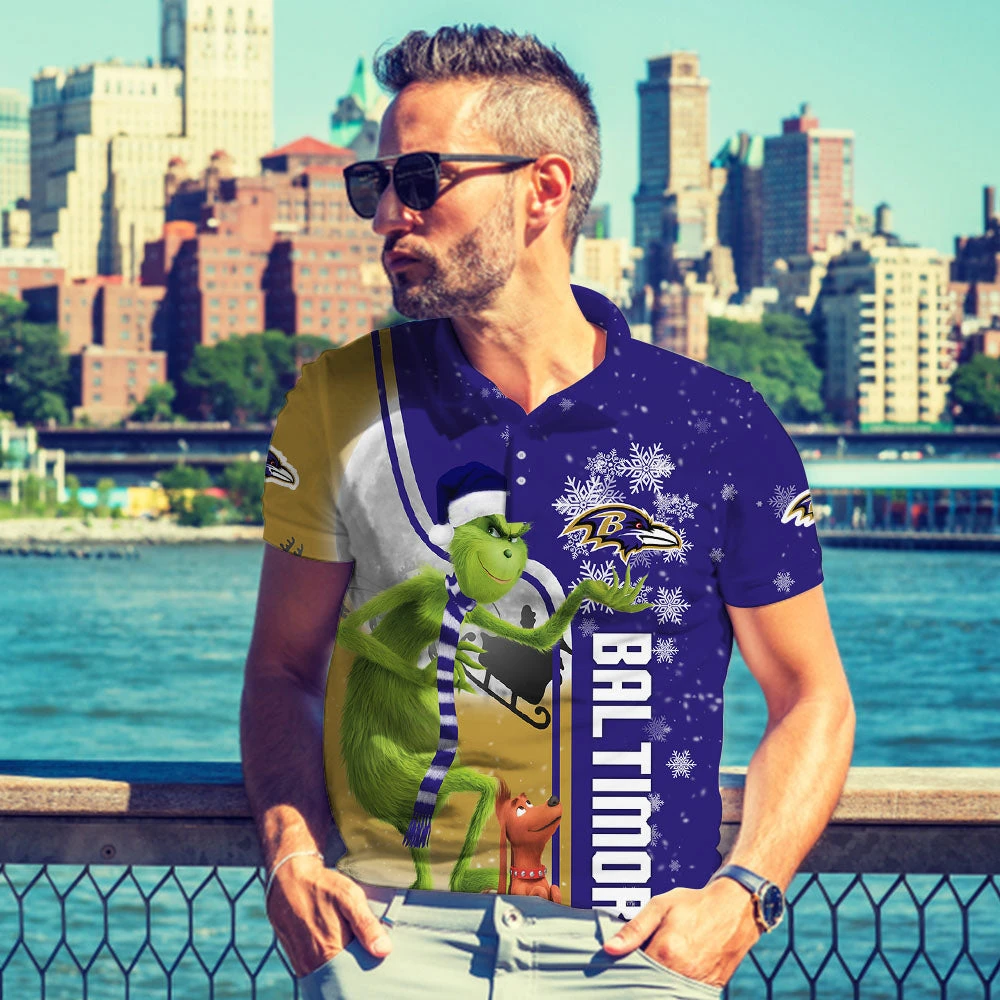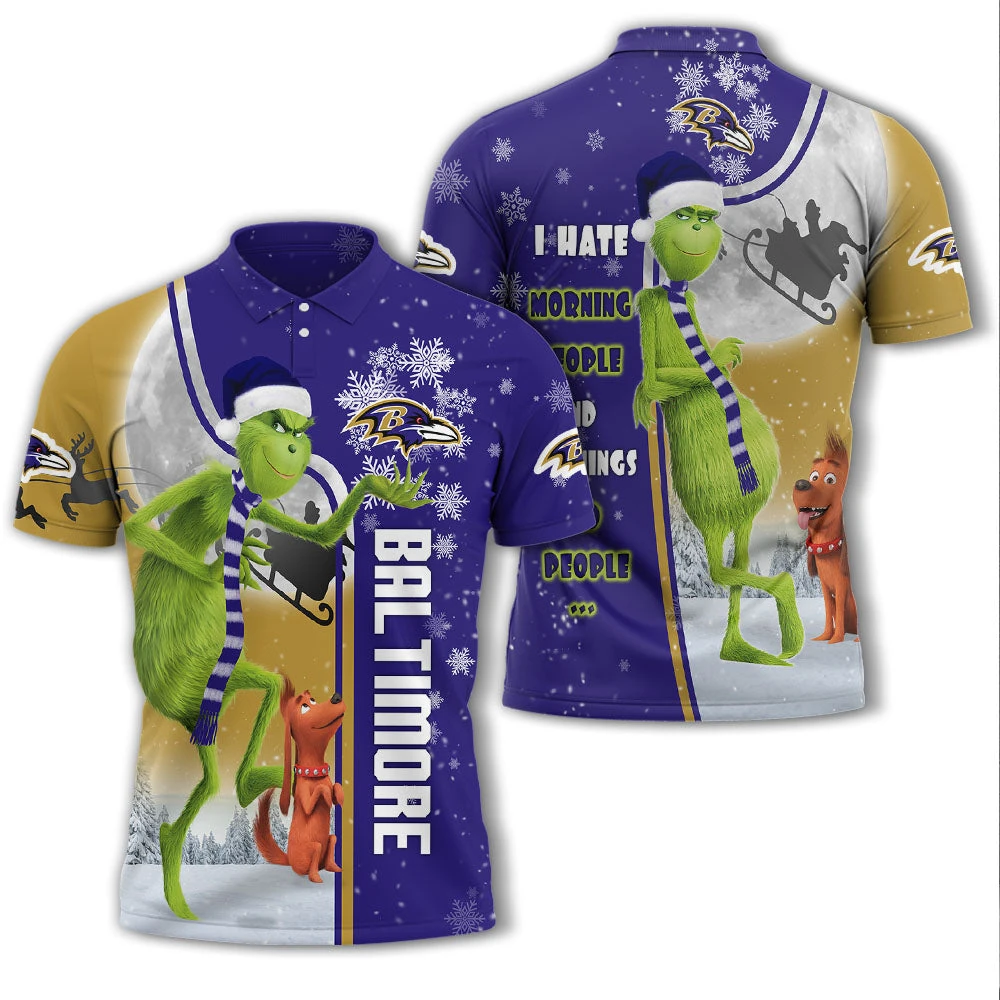 Personalized Funny Christmas The Grinch Baltimore Ravens NFL I Hate Morning People Shirt Gifts Unisex 3D Polo – Bluefink