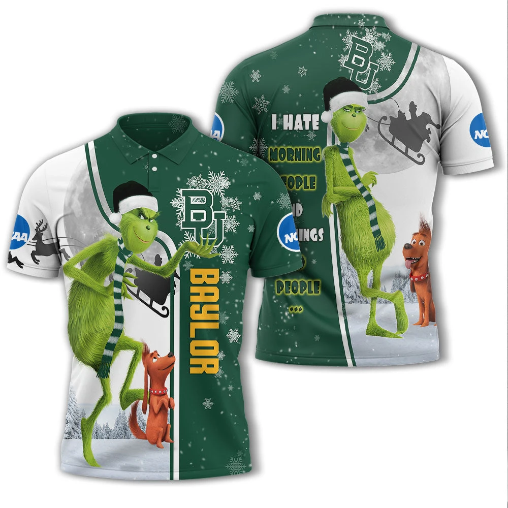 Personalized Funny Christmas The Grinch Baylor Bears NCAA I Hate Morning People Shirt Gifts Unisex 3D Polo