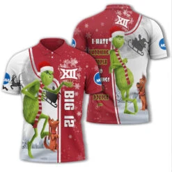 Personalized Funny Christmas The Grinch Big 12 Conference NCAA I Hate Morning People Shirt Gifts Unisex 3D Polo – Bluefink