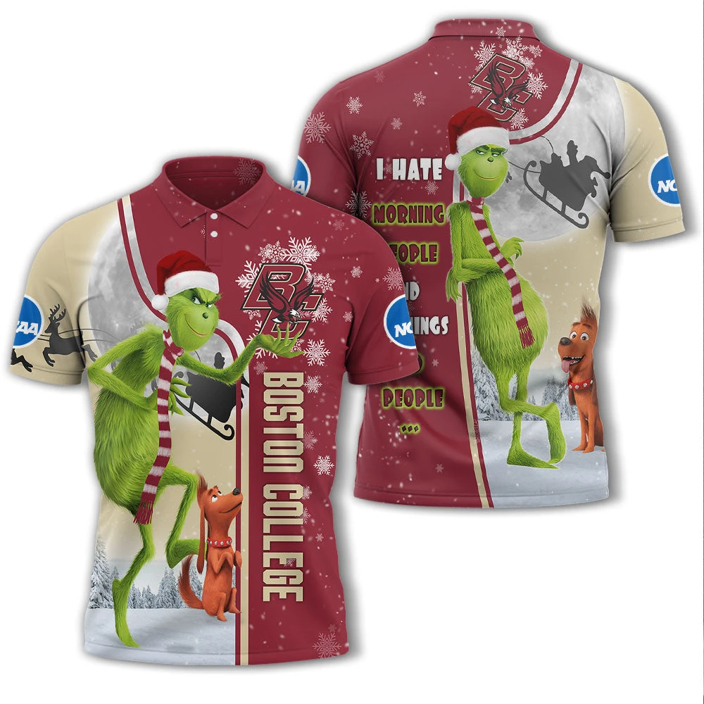 Personalized Funny Christmas The Grinch Boston College Eagles NCAA I Hate Morning People Shirt Gifts Unisex 3D Polo – Bluefink