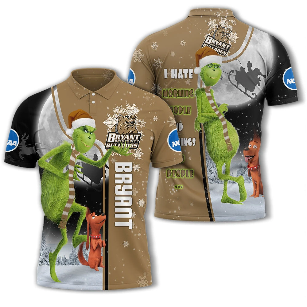 Personalized Funny Christmas The Grinch Bryant Bulldogs NCAA I Hate Morning People Shirt Gifts Unisex 3D Polo – Bluefink