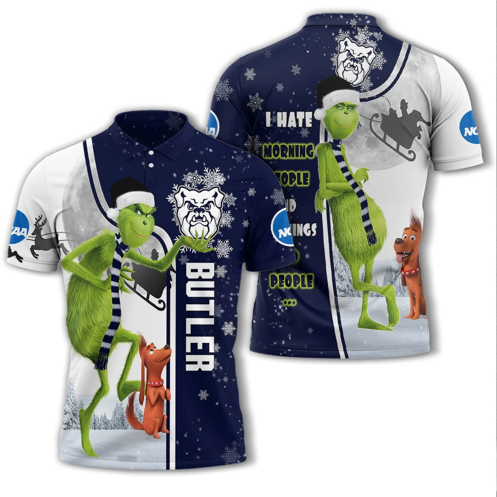 Personalized Funny Christmas The Grinch Butler Bulldogs NCAA I Hate Morning People Shirt Gifts Unisex 3D Polo – Bluefink