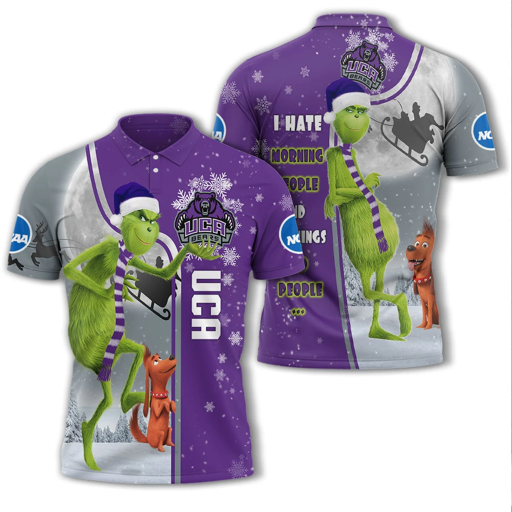 Personalized Funny Christmas The Grinch Central Arkansas Bears NCAA I Hate Morning People Shirt Gifts Unisex 3D Polo – Bluefink