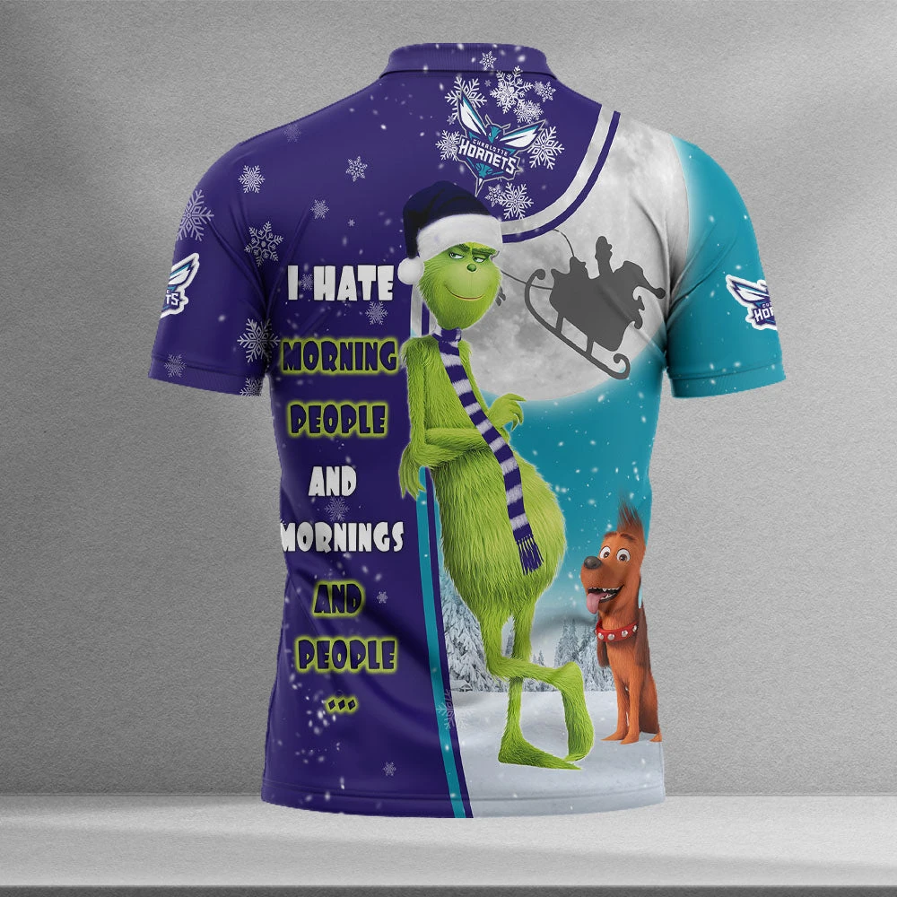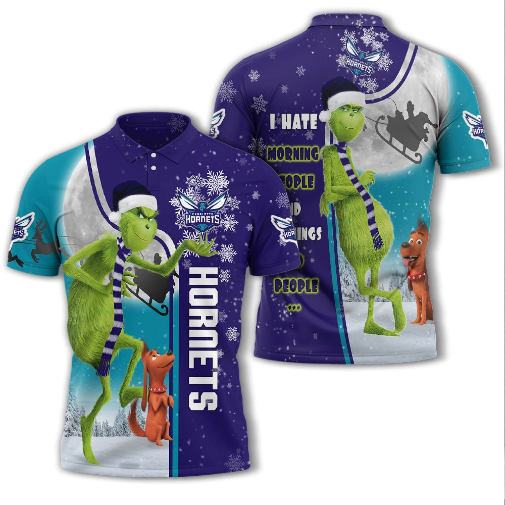 Personalized Funny Christmas The Grinch Charlotte Hornets NBA I Hate Morning People Shirt Gifts Unisex 3D Polo – Bluefink