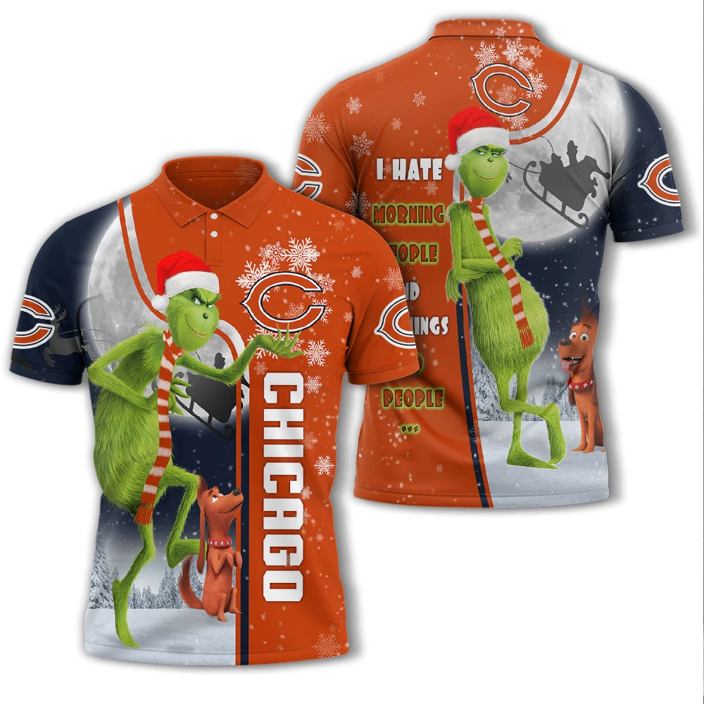 Personalized Funny Christmas The Grinch Chicago Bears NFL I Hate Morning People Shirt Gifts Unisex 3D Polo – Bluefink