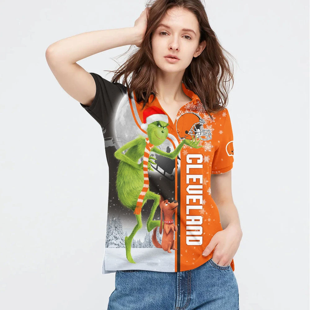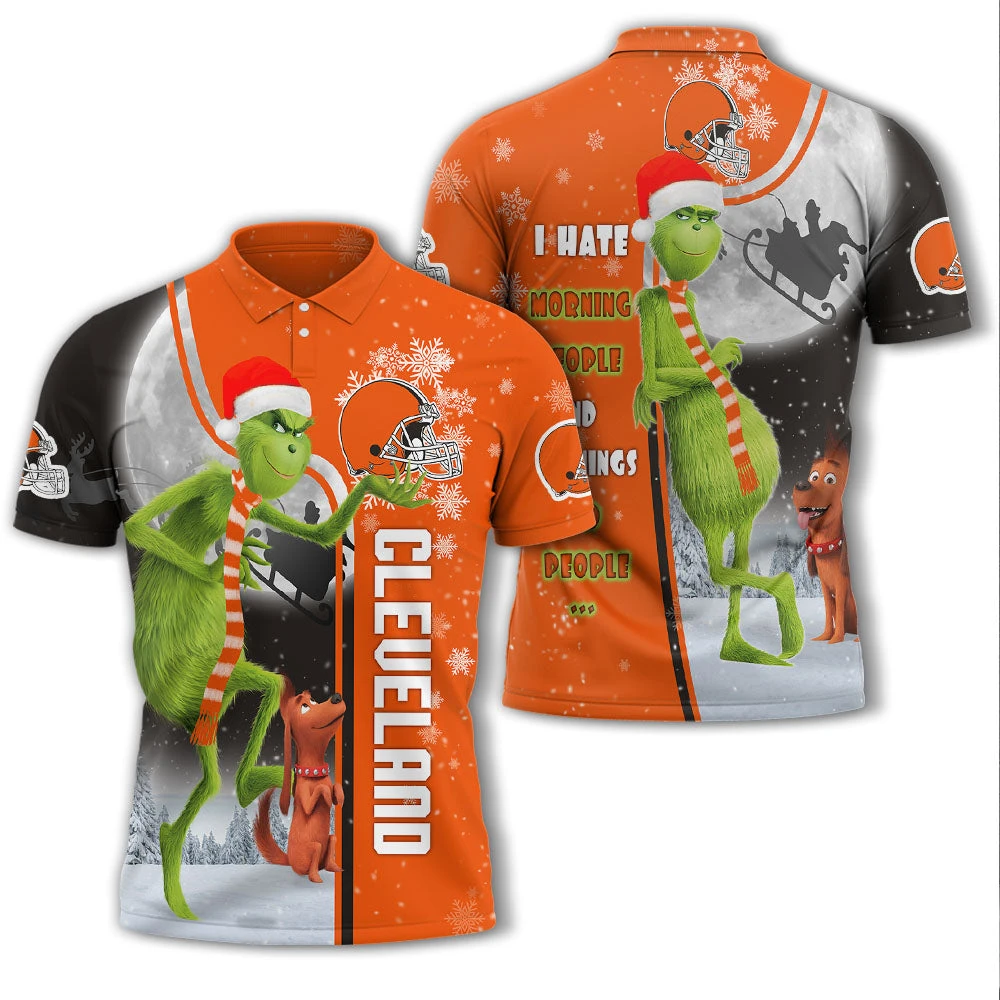 Personalized Funny Christmas The Grinch Cleveland Browns NFL I Hate Morning People Shirt Gifts Unisex 3D Polo – Bluefink