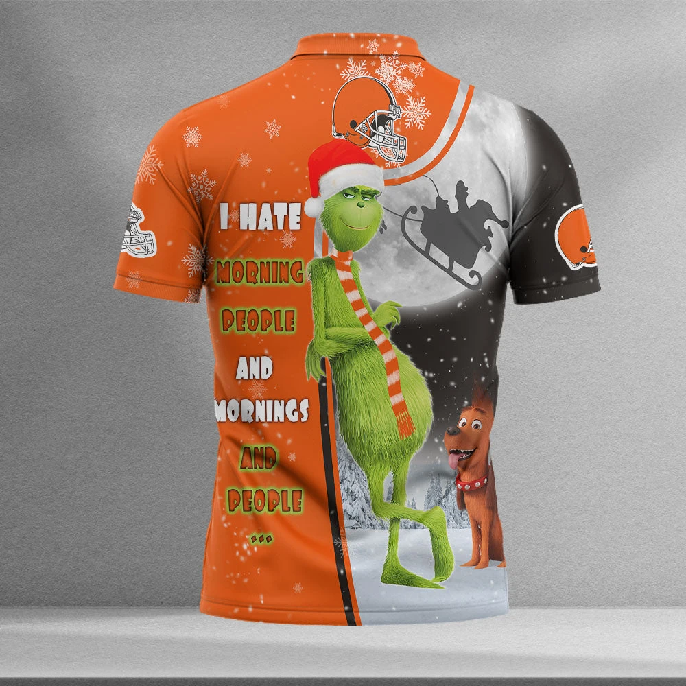 Personalized Funny Christmas The Grinch Cleveland Browns NFL I Hate Morning People Shirt Gifts Unisex 3D Polo