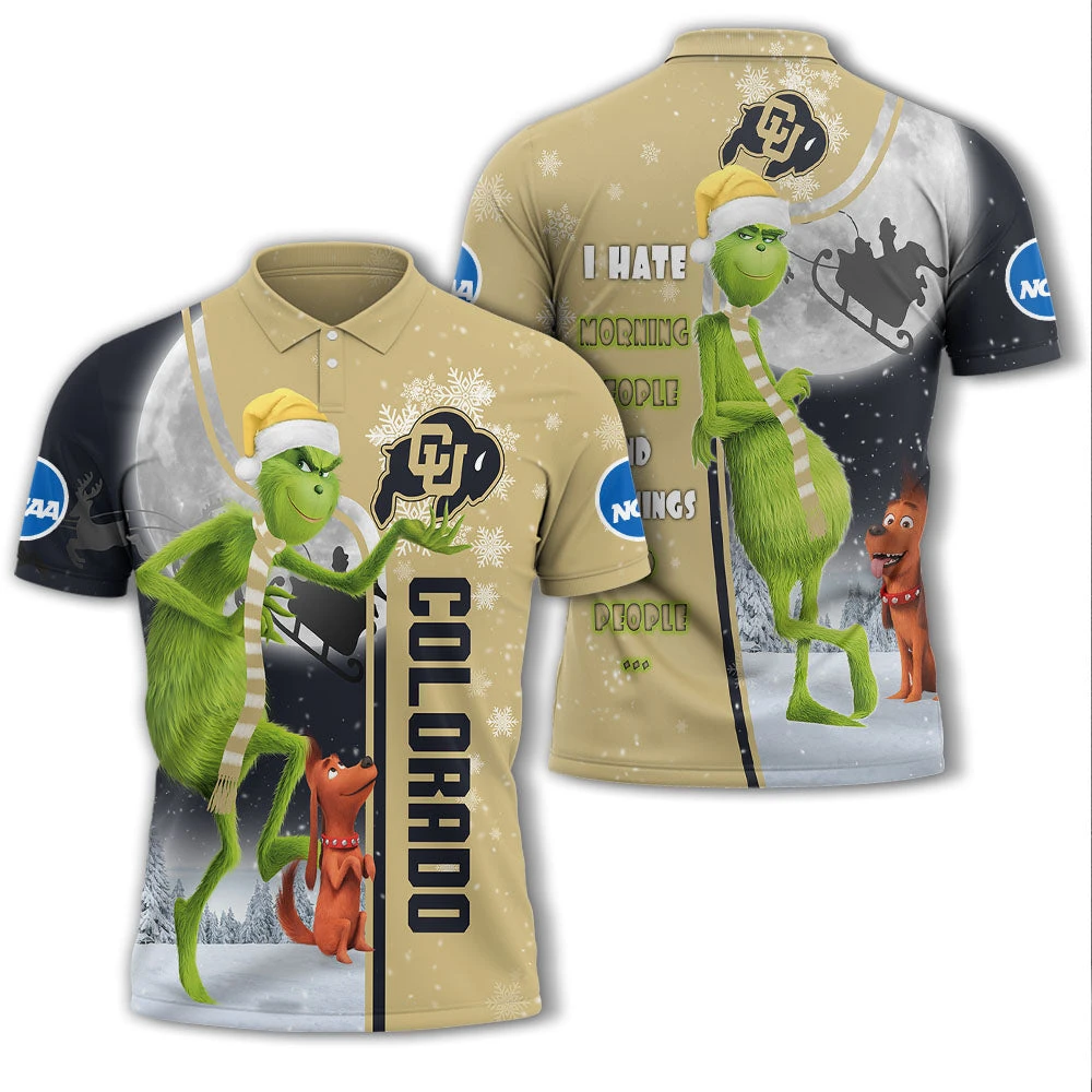 Personalized Funny Christmas The Grinch Colorado Buffaloes NCAA I Hate Morning People Shirt Gifts Unisex 3D Polo – Bluefink