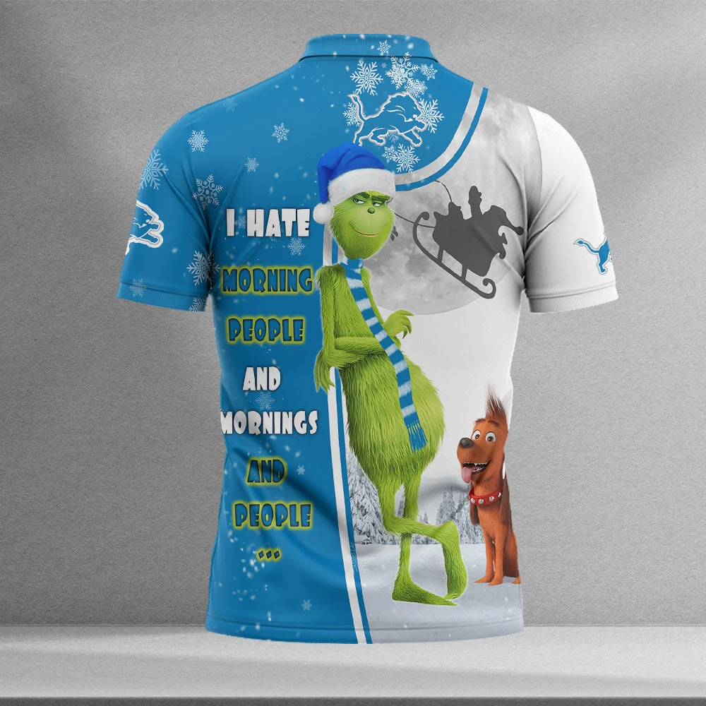 Personalized Funny Christmas The Grinch Detroit Lions NFL I Hate Morning People Shirt Gifts Unisex 3D Polo – Bluefink