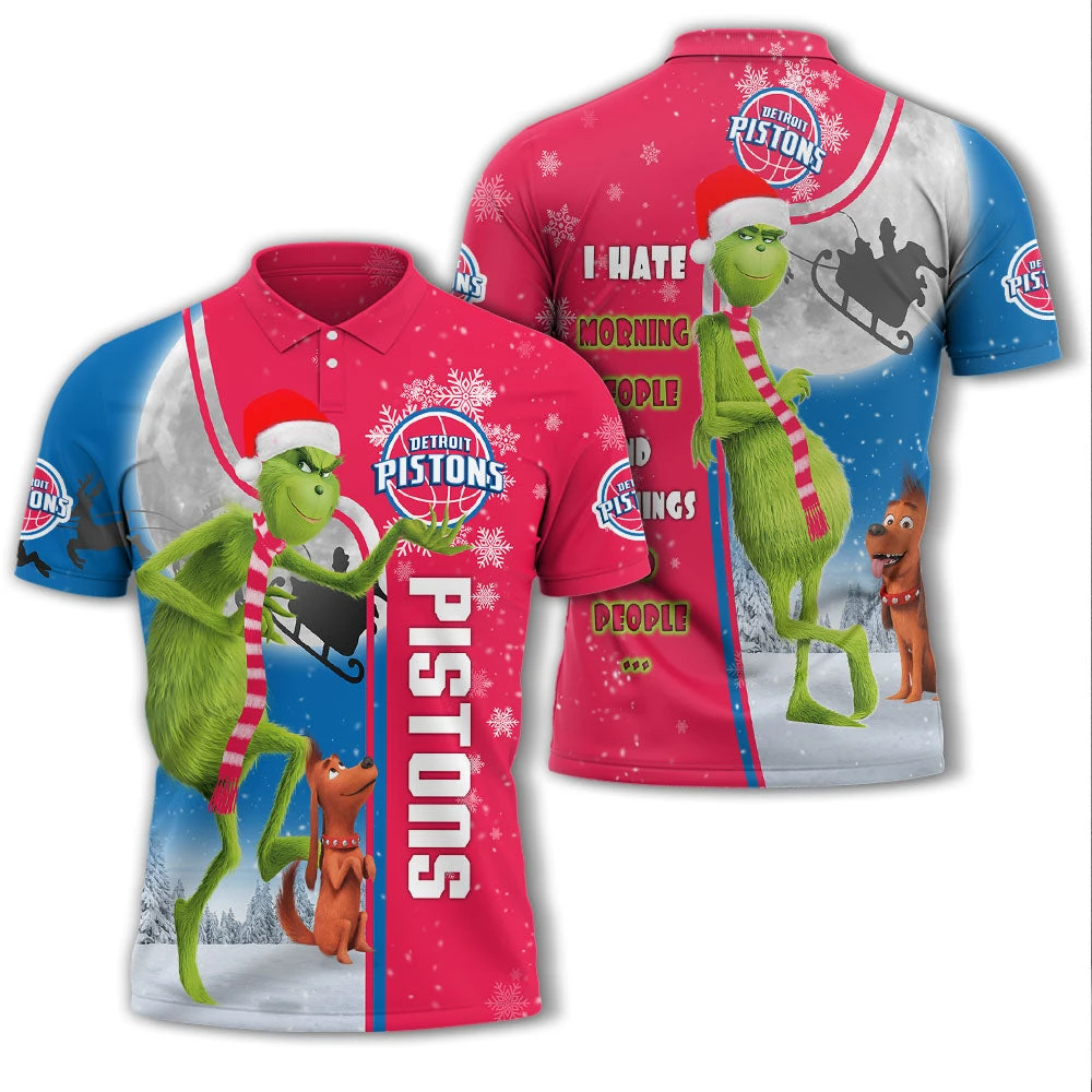 Personalized Funny Christmas The Grinch Detroit Pistons NBA I Hate Morning People Shirt Gifts Unisex 3D Polo – Bluefink