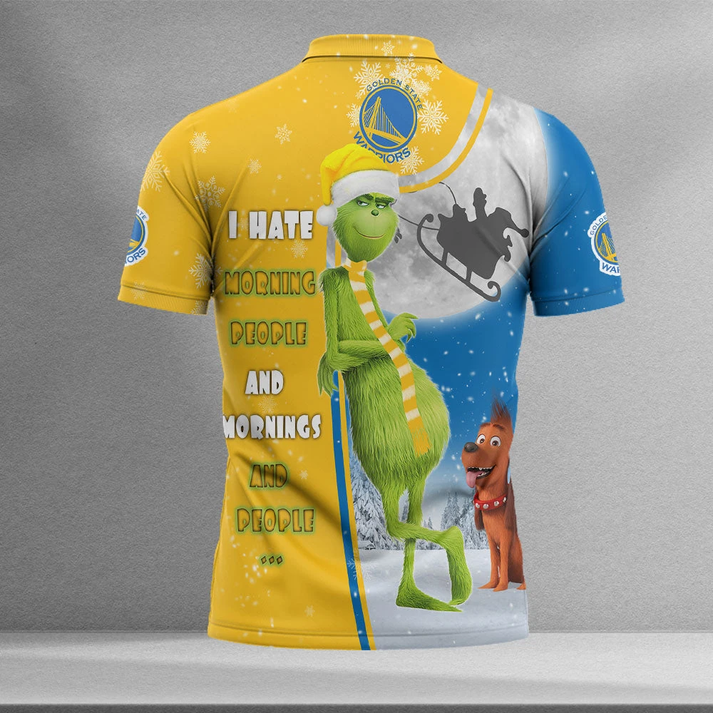 Personalized Funny Christmas The Grinch Golden State Warriors NBA I Hate Morning People Shirt Gifts Unisex 3D Polo – Bluefink