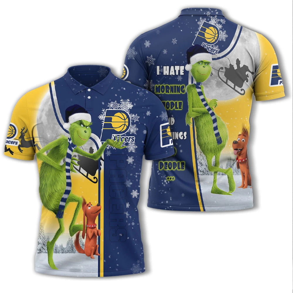 Personalized Funny Christmas The Grinch Indiana Pacers NBA I Hate Morning People Shirt Gifts Unisex 3D Polo – Bluefink