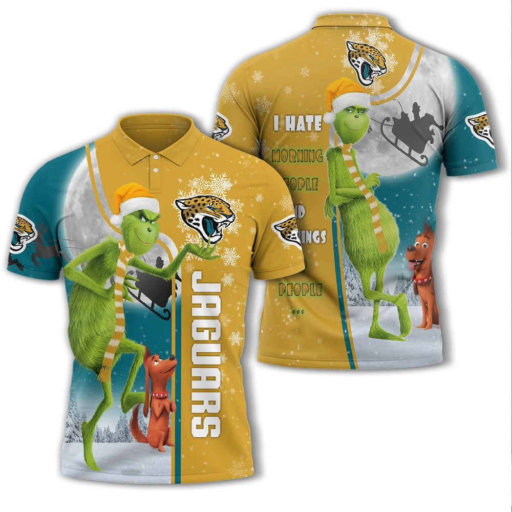 Personalized Funny Christmas The Grinch Jacksonville Jaguars NFL I Hate Morning People Shirt Gifts Unisex 3D Polo – Bluefink