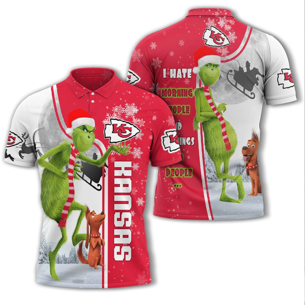 Personalized Funny Christmas The Grinch Kansas City Chiefs NFL I Hate Morning People Shirt Gifts Unisex 3D Polo – Bluefink