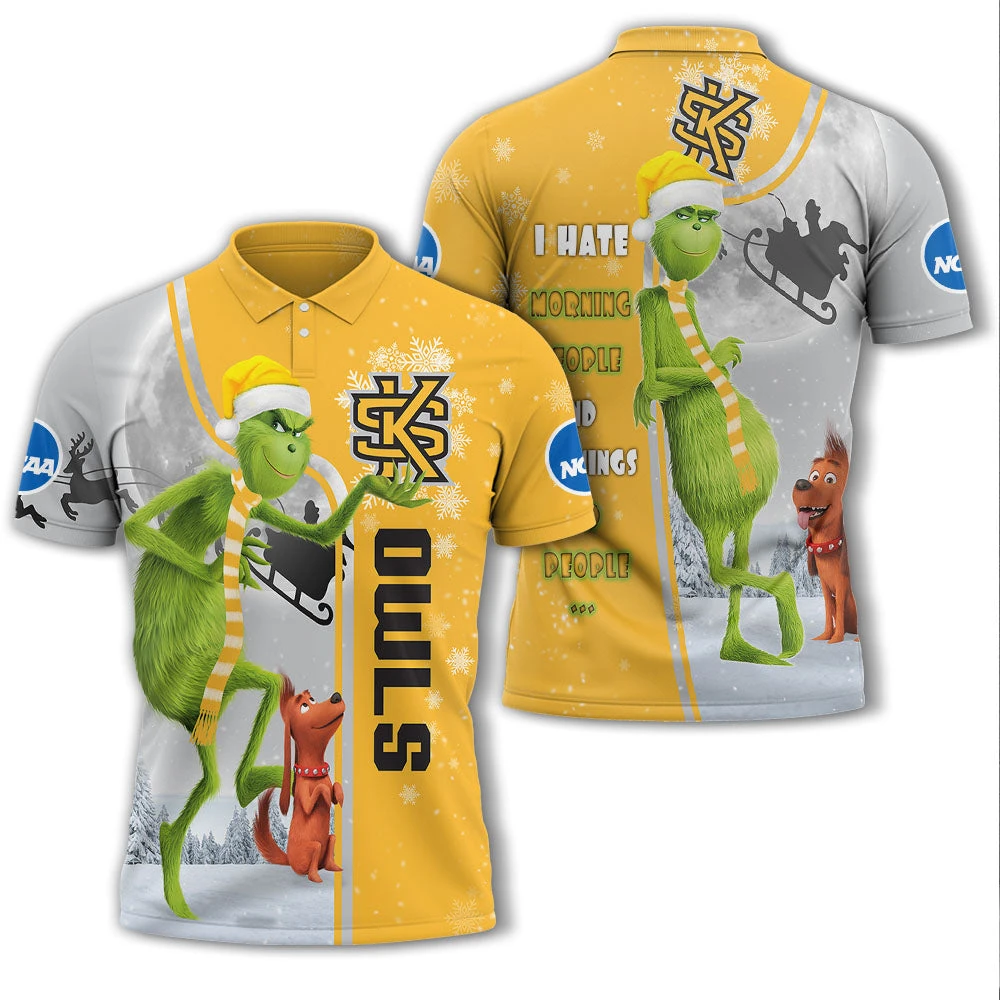 Personalized Funny Christmas The Grinch Kennesaw State Owls NCAA I Hate Morning People Shirt Gifts Unisex 3D Polo