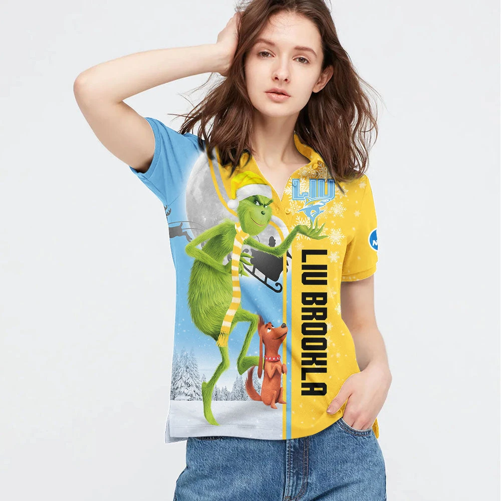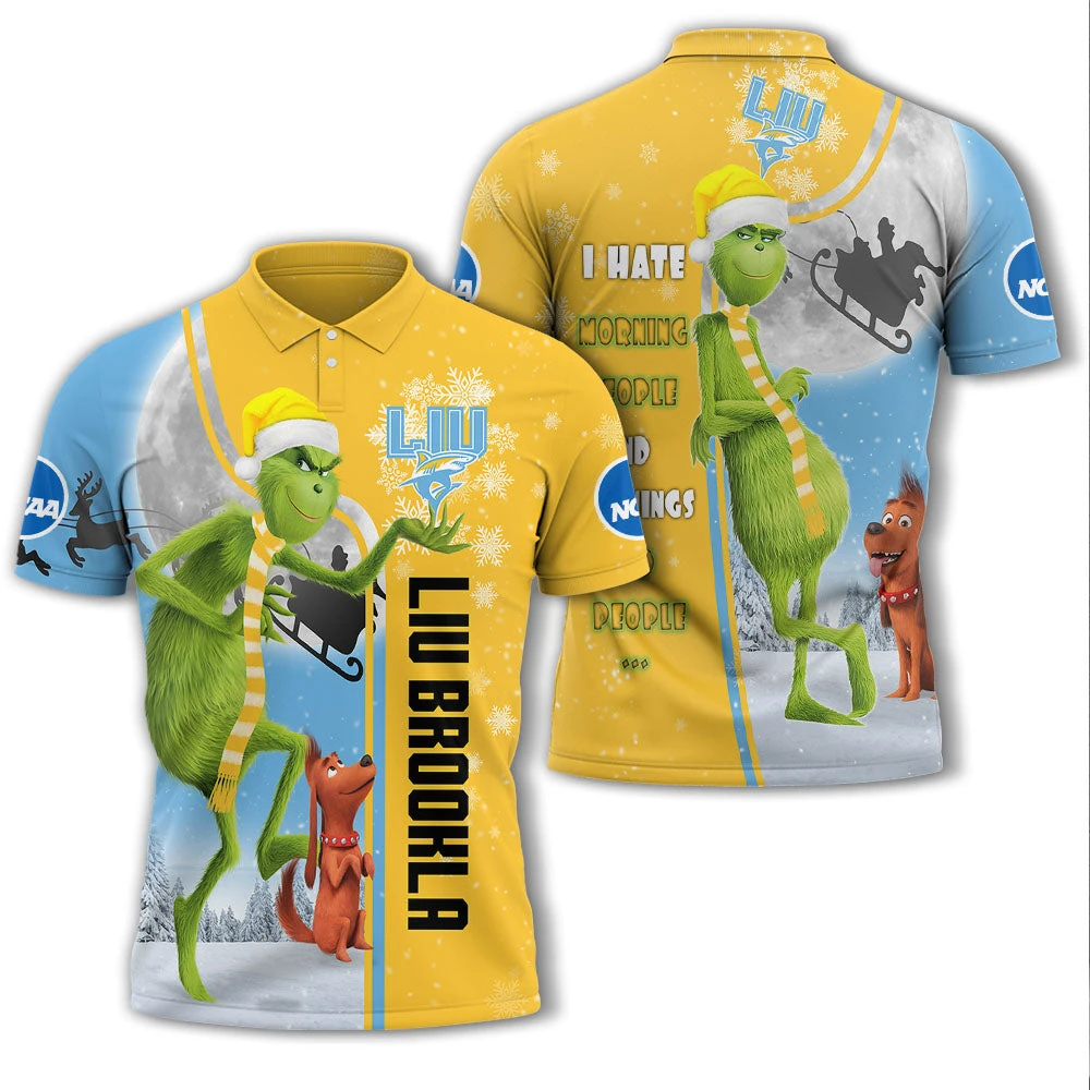 Personalized Funny Christmas The Grinch LIU Brooklyn Blackbirds NCAA I Hate Morning People Shirt Gifts Unisex 3D Polo – Bluefink