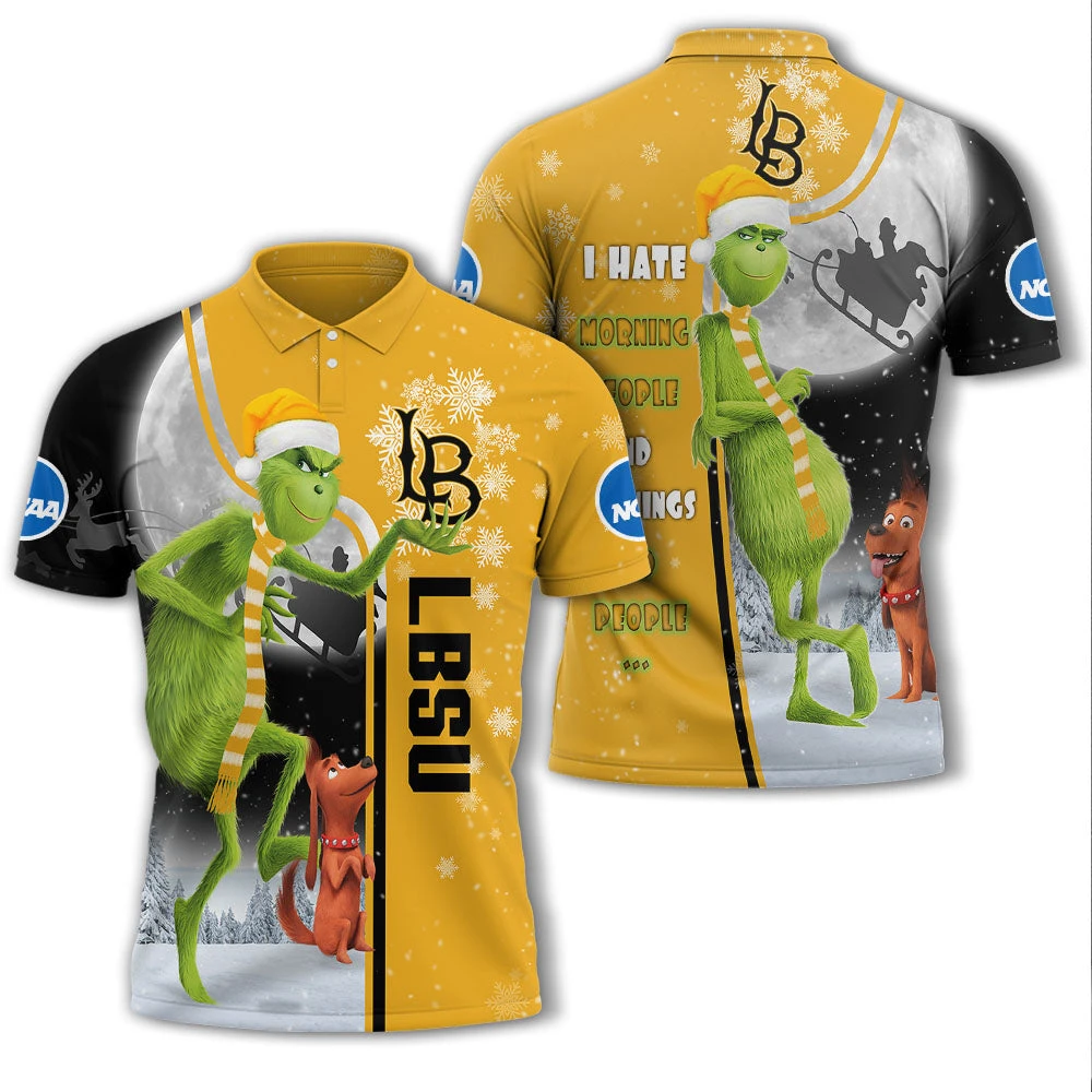 Personalized Funny Christmas The Grinch Long Beach State 49ers NCAA I Hate Morning People Shirt Gifts Unisex 3D Polo – Bluefink