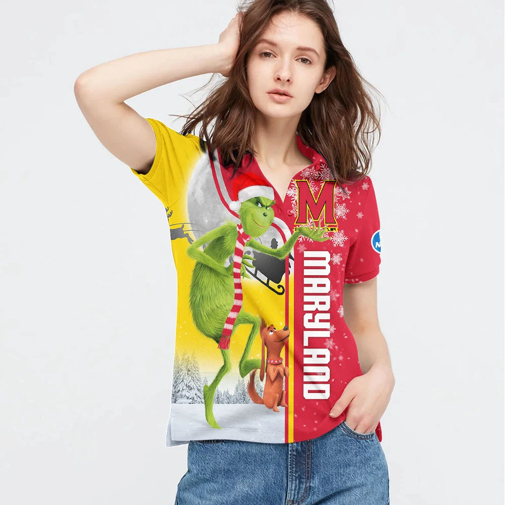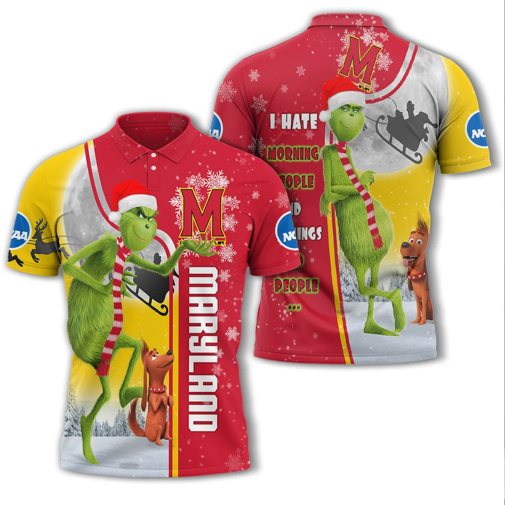 Personalized Funny Christmas The Grinch Maryland Terrapins NCAA I Hate Morning People Shirt Gifts Unisex 3D Polo – Bluefink