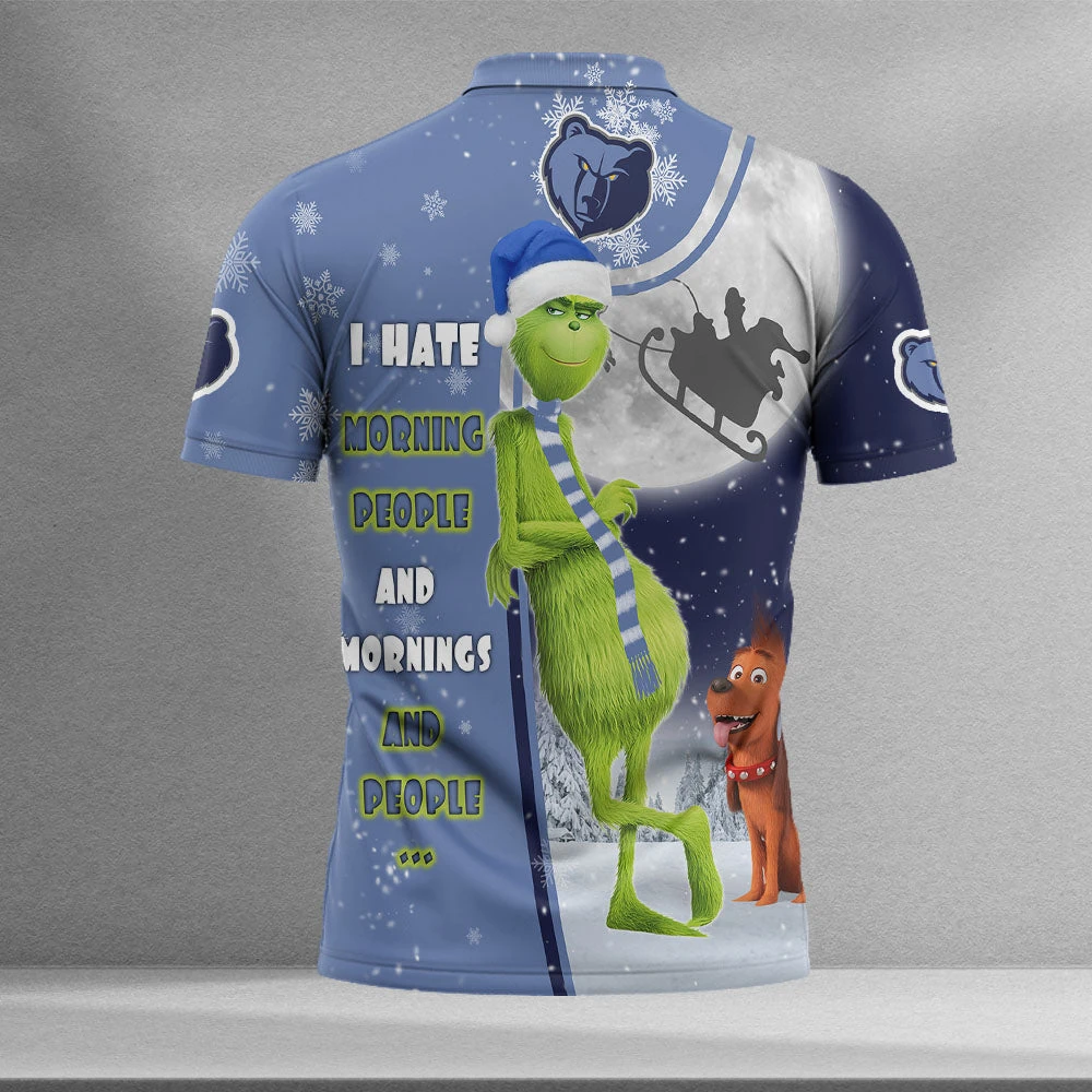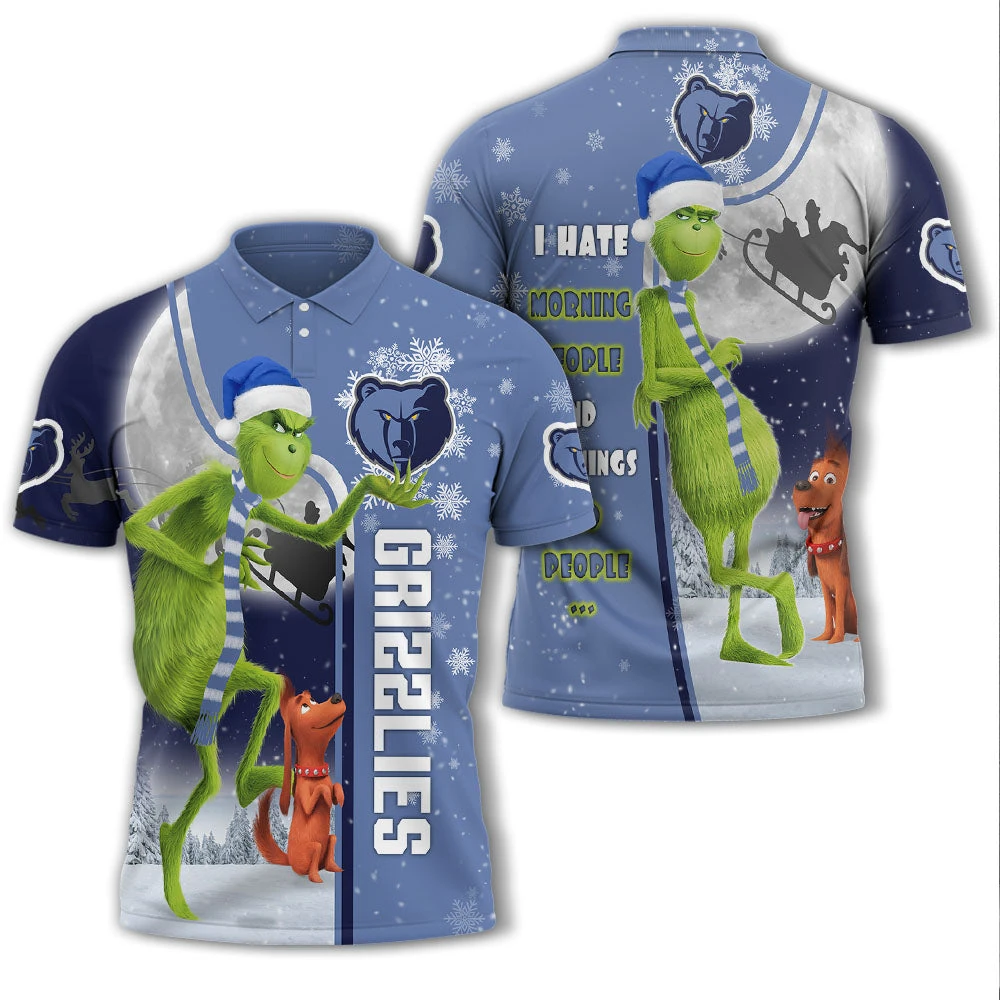 Personalized Funny Christmas The Grinch Memphis Grizzlies NBA I Hate Morning People Shirt Gifts Unisex 3D Polo – Bluefink