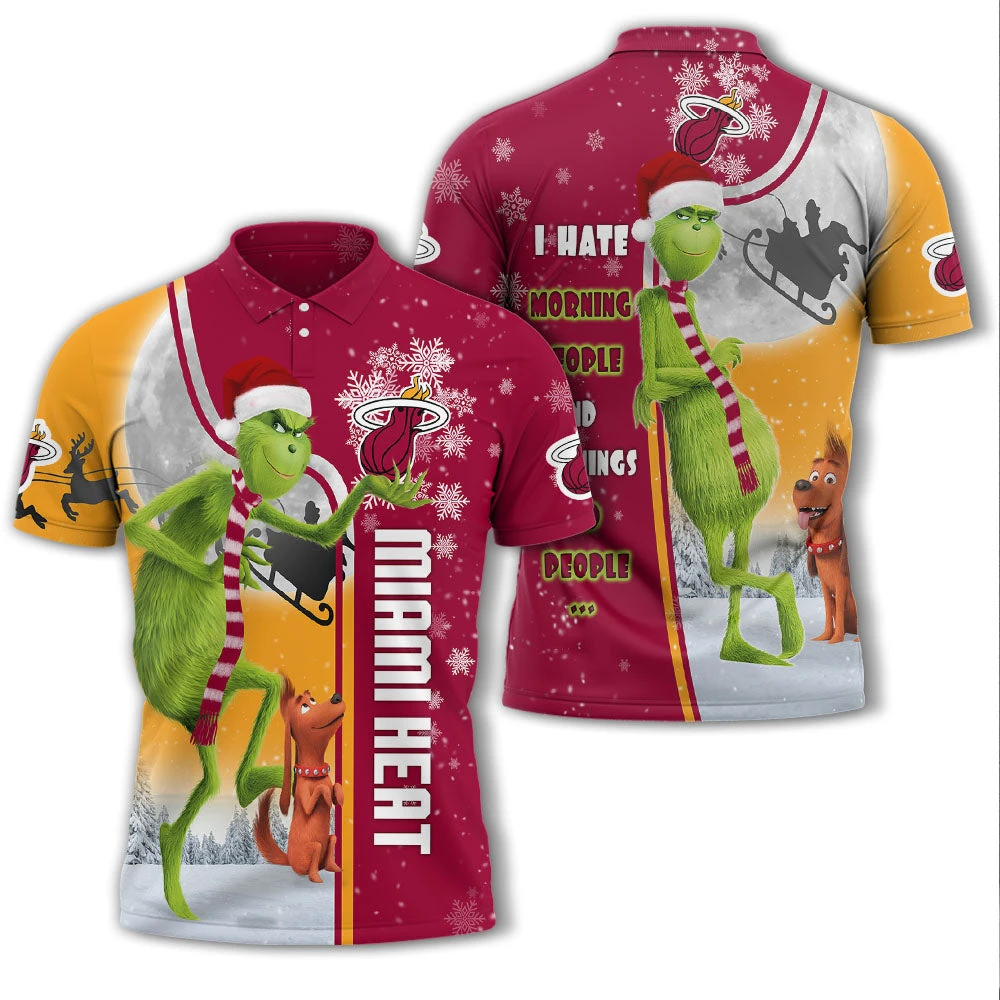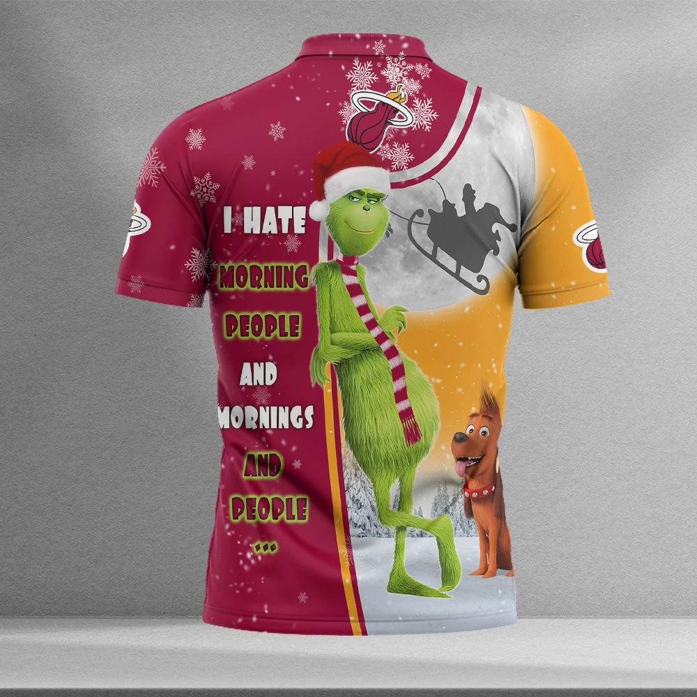 Personalized Funny Christmas The Grinch Miami Heat NBA I Hate Morning People Shirt Gifts Unisex 3D Polo – Bluefink