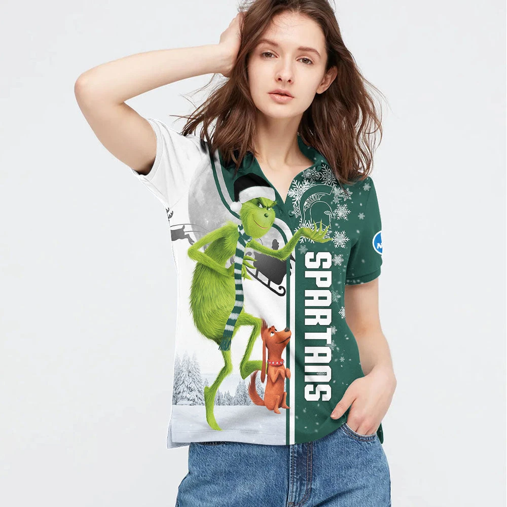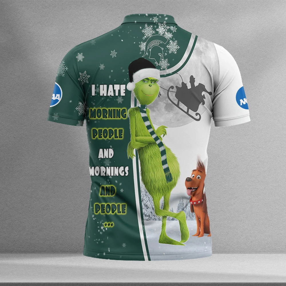 Personalized Funny Christmas The Grinch Michigan State Spartans NCAA I Hate Morning People Shirt Gifts Unisex 3D Polo – Bluefink