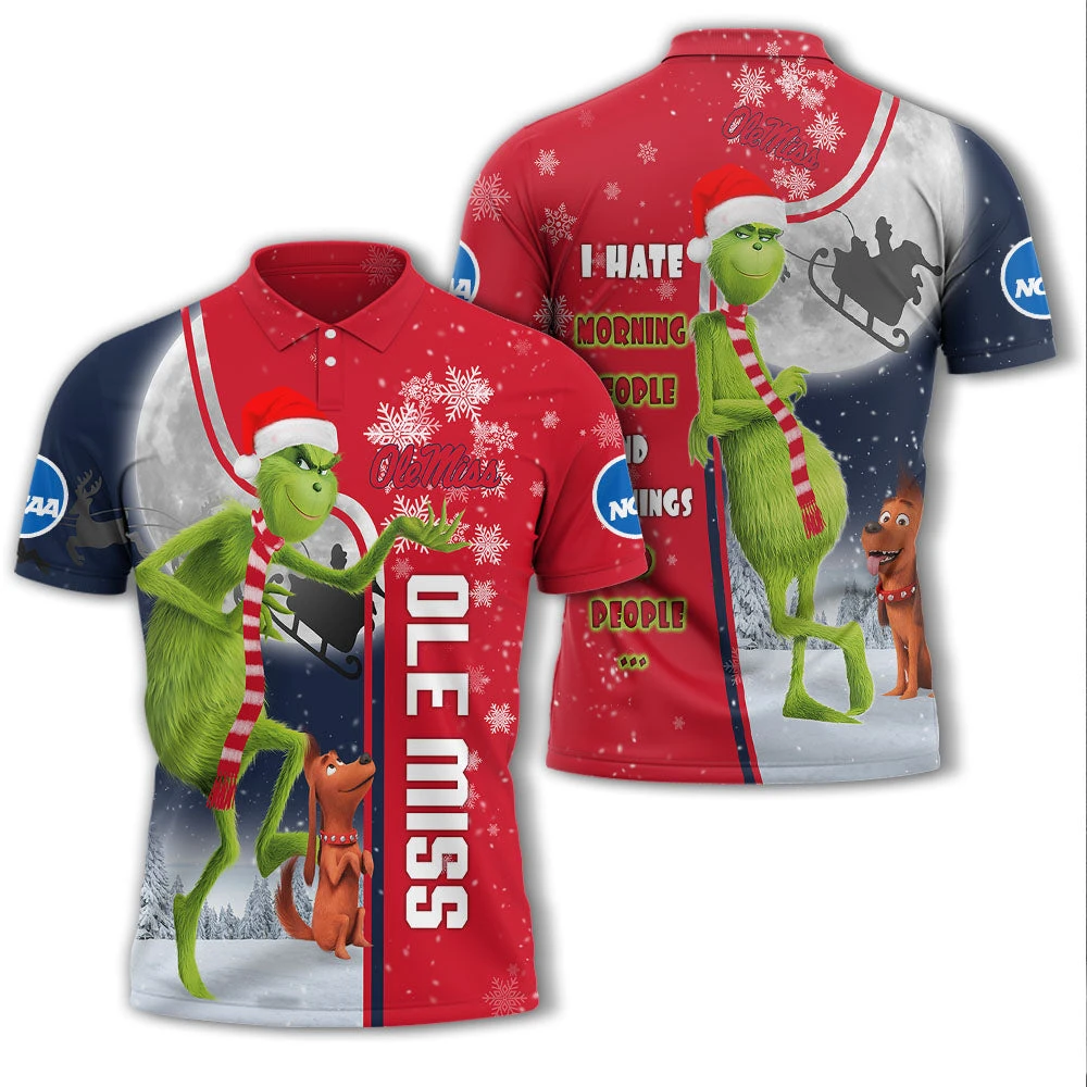Personalized Funny Christmas The Grinch Mississippi Rebels NCAA I Hate Morning People Shirt Gifts Unisex 3D Polo – Bluefink