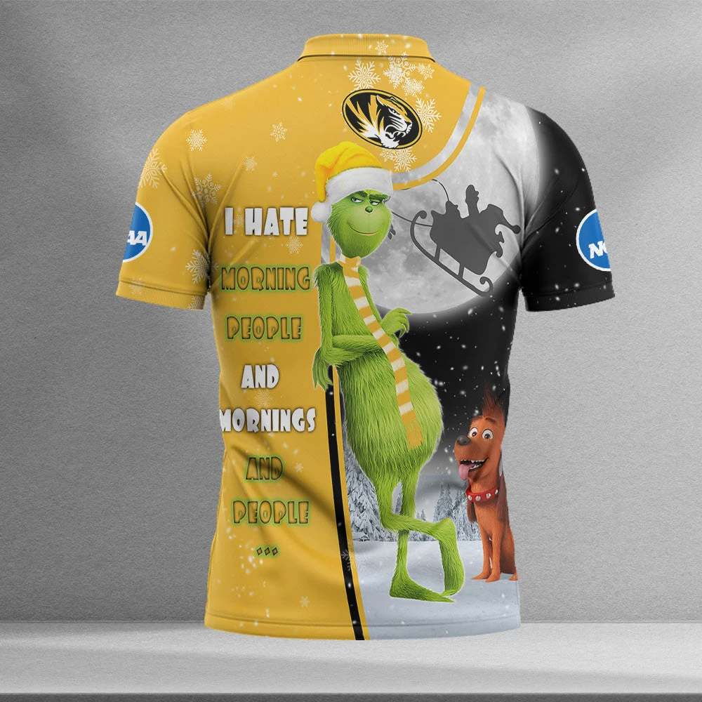 Personalized Funny Christmas The Grinch Missouri Tigers NCAA I Hate Morning People Shirt Gifts Unisex 3D Polo – Bluefink