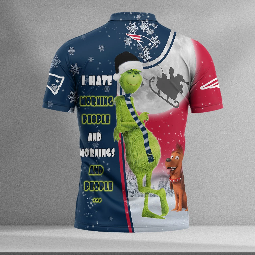 Personalized Funny Christmas The Grinch New England Patriots NFL I Hate Morning People Shirt Gifts Unisex 3D Polo – Bluefink