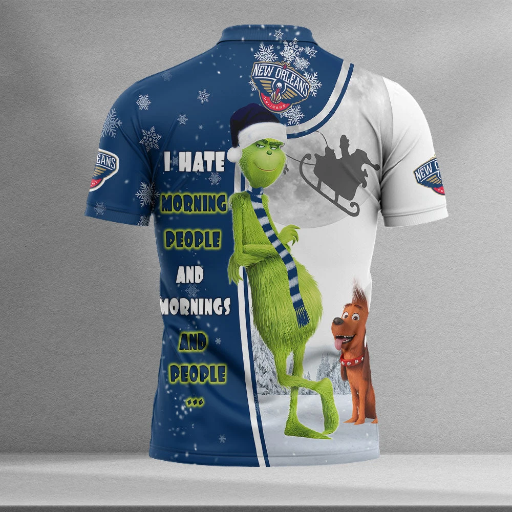 Personalized Funny Christmas The Grinch New Orlean Pelicans NBA I Hate Morning People Shirt Gifts Unisex 3D Polo – Bluefink