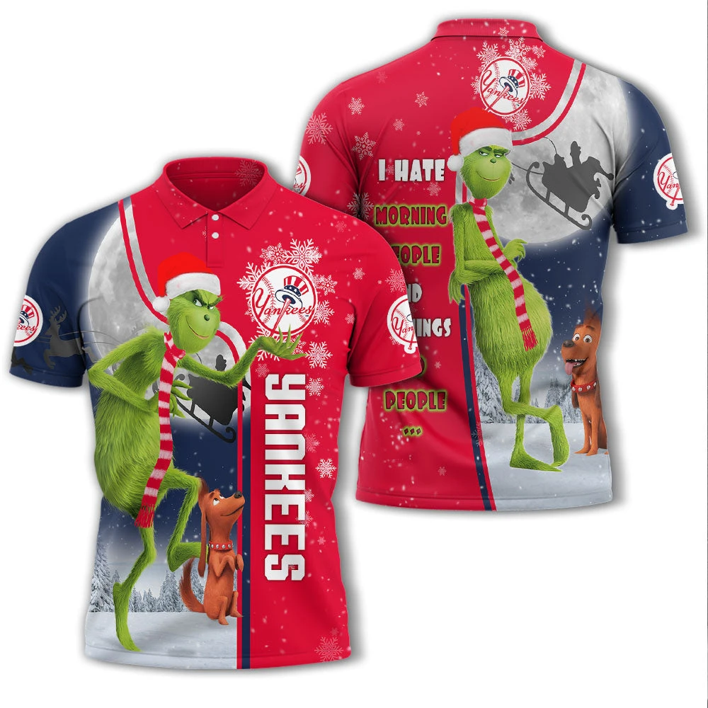 Personalized Funny Christmas The Grinch New York Yankees MLB I Hate Morning People Shirt Gifts Unisex 3D Polo – Bluefink