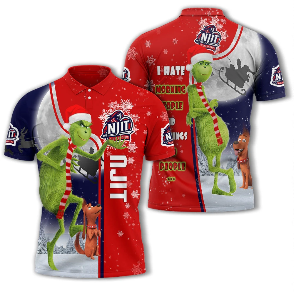 Personalized Funny Christmas The Grinch NJIT Highlanders NCAA I Hate Morning People Shirt Gifts Unisex 3D Polo