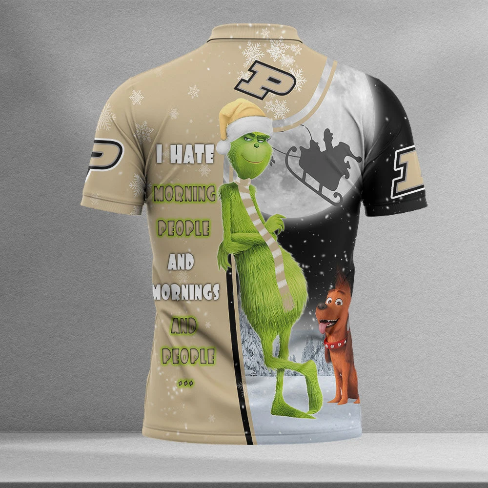 Personalized Funny Christmas The Grinch Purdue Boilermakers NCAA I Hate Morning People Shirt Gifts Unisex 3D Polo