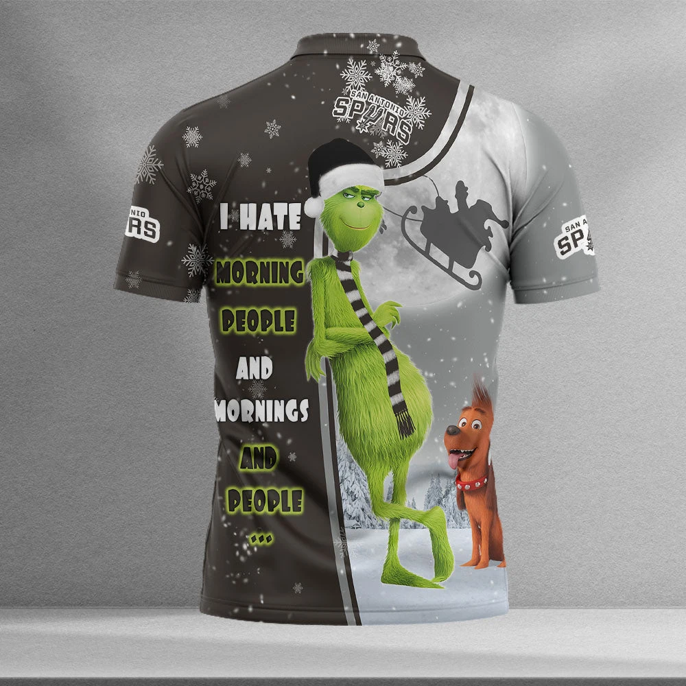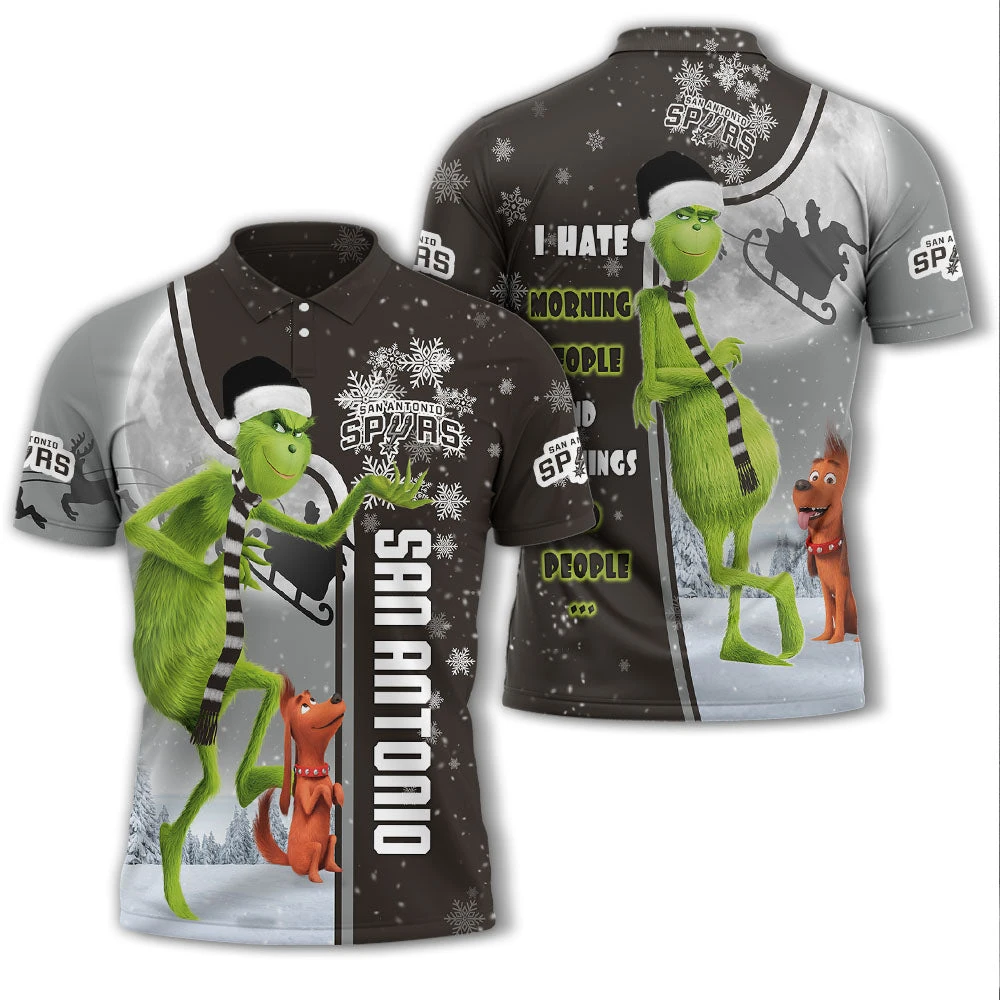 Personalized Funny Christmas The Grinch San Antonio Spurs NBA I Hate Morning People Shirt Gifts Unisex 3D Polo – Bluefink