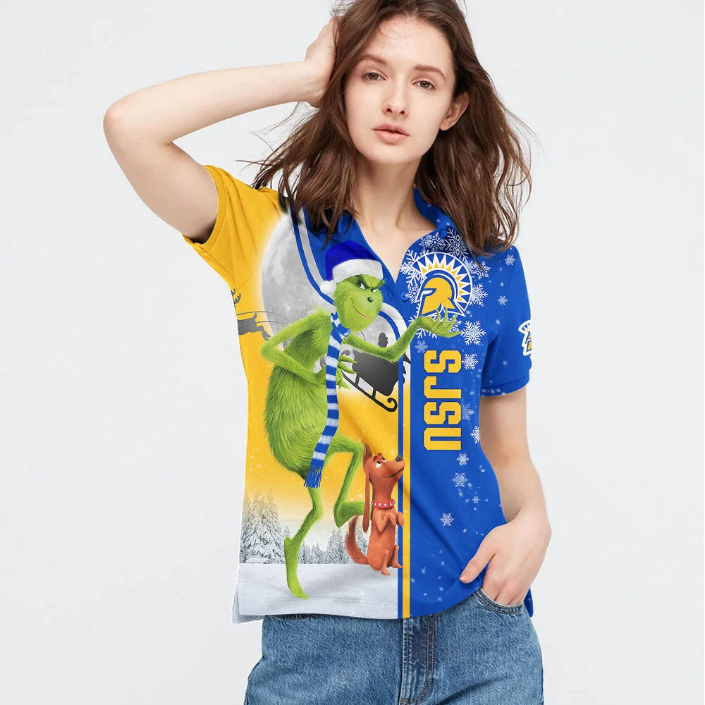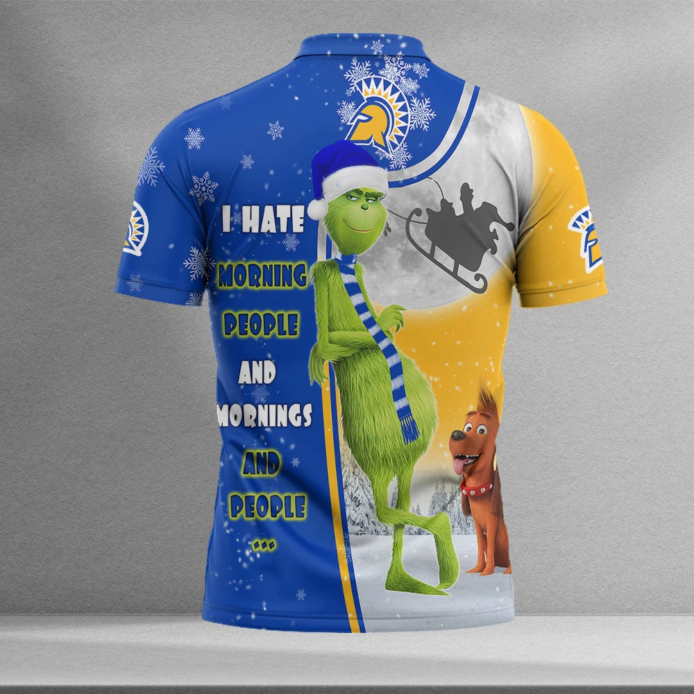 Personalized Funny Christmas The Grinch San Jose State Spartans NCAA I Hate Morning People Shirt Gifts Unisex 3D Polo – Bluefink