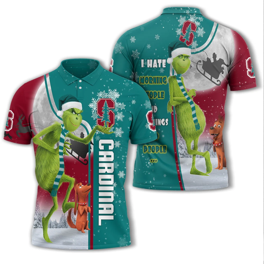 Personalized Funny Christmas The Grinch Stanford Cardinal NCAA I Hate Morning People Shirt Gifts Unisex 3D Polo – Bluefink