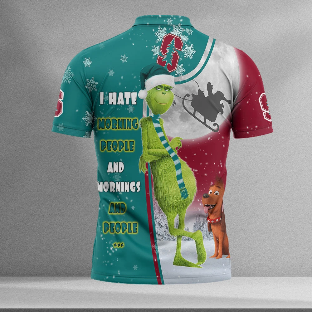 Personalized Funny Christmas The Grinch Stanford Cardinal NCAA I Hate Morning People Shirt Gifts Unisex 3D Polo
