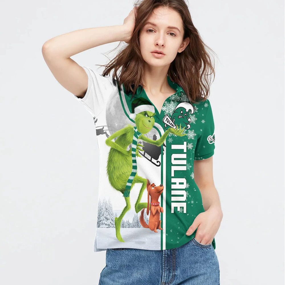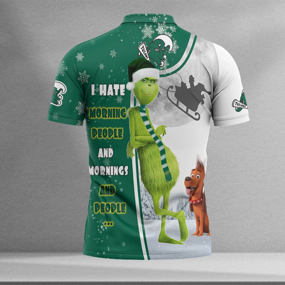 Personalized Funny Christmas The Grinch Tulane Green Wave NCAA I Hate Morning People Shirt Gifts Unisex 3D Polo – Bluefink