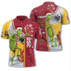 Personalized Funny Christmas The Grinch USC Trojans NCAA I Hate Morning People Shirt Gifts Unisex 3D Polo – Bluefink