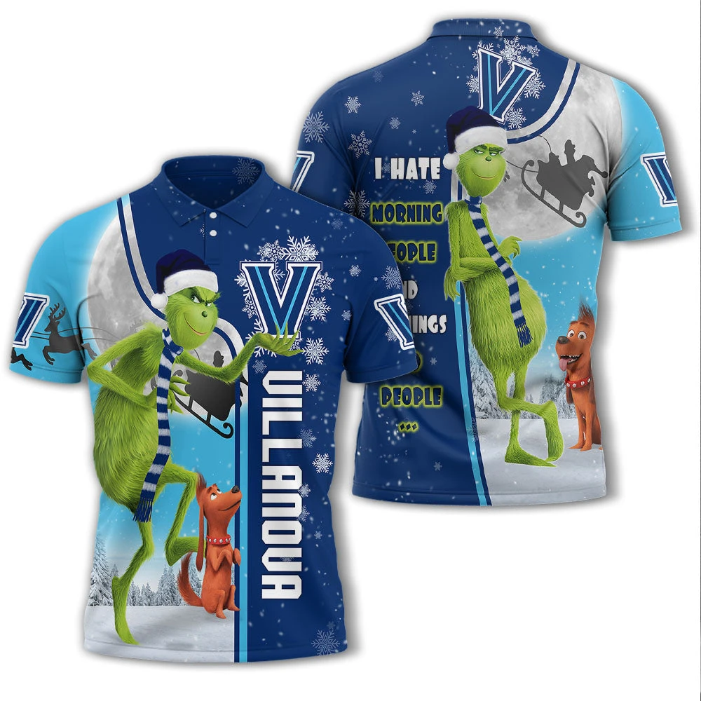 Personalized Funny Christmas The Grinch Villanova Wildcats NCAA I Hate Morning People Shirt Gifts Unisex 3D Polo – Bluefink