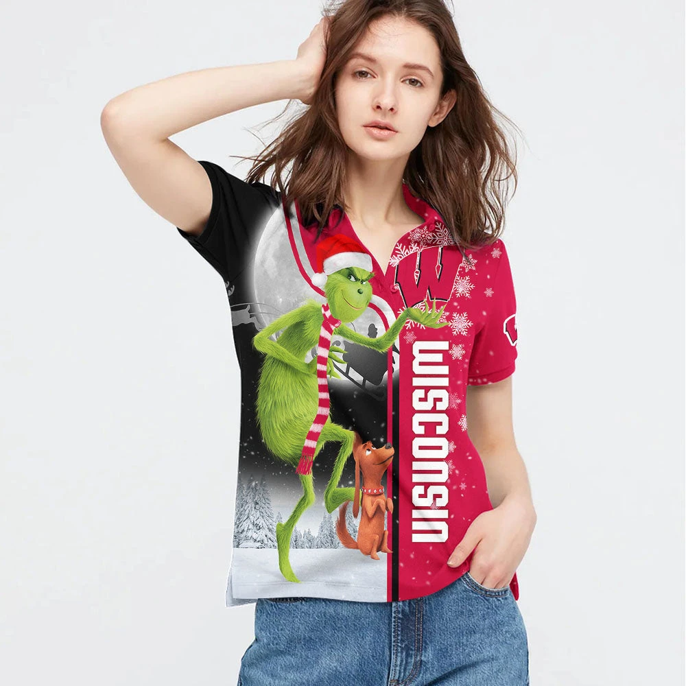 Personalized Funny Christmas The Grinch Wisconsin Badgers NCAA I Hate Morning People Shirt Gifts Unisex 3D Polo – Bluefink