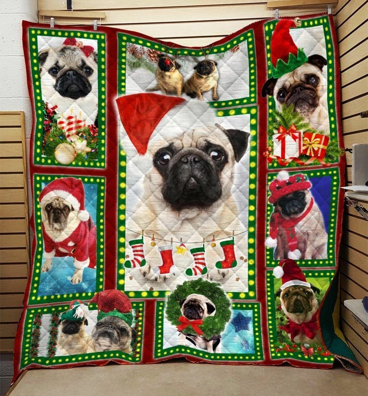 Personalized Merry Christmas Pug Quilt Bedding Set – Great For Bedroom Decor And Family Gifts – Bluefink