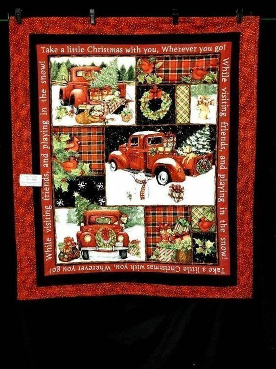 Retro Car Christmas Quilt Bedding Set With Custom Name, Great For Home Decoration And Family Gifts – Bluefink