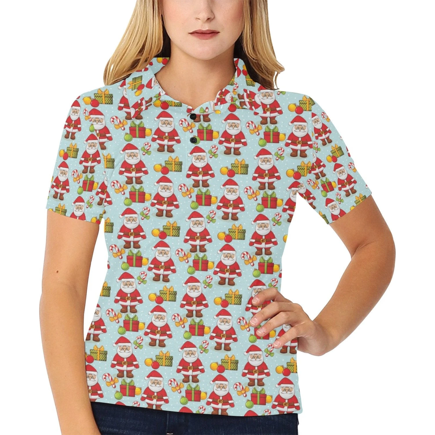 Santa Christmas Themed Print Design Women’s Polo Shirt 3D Polo Shirt A4 – Bluefink