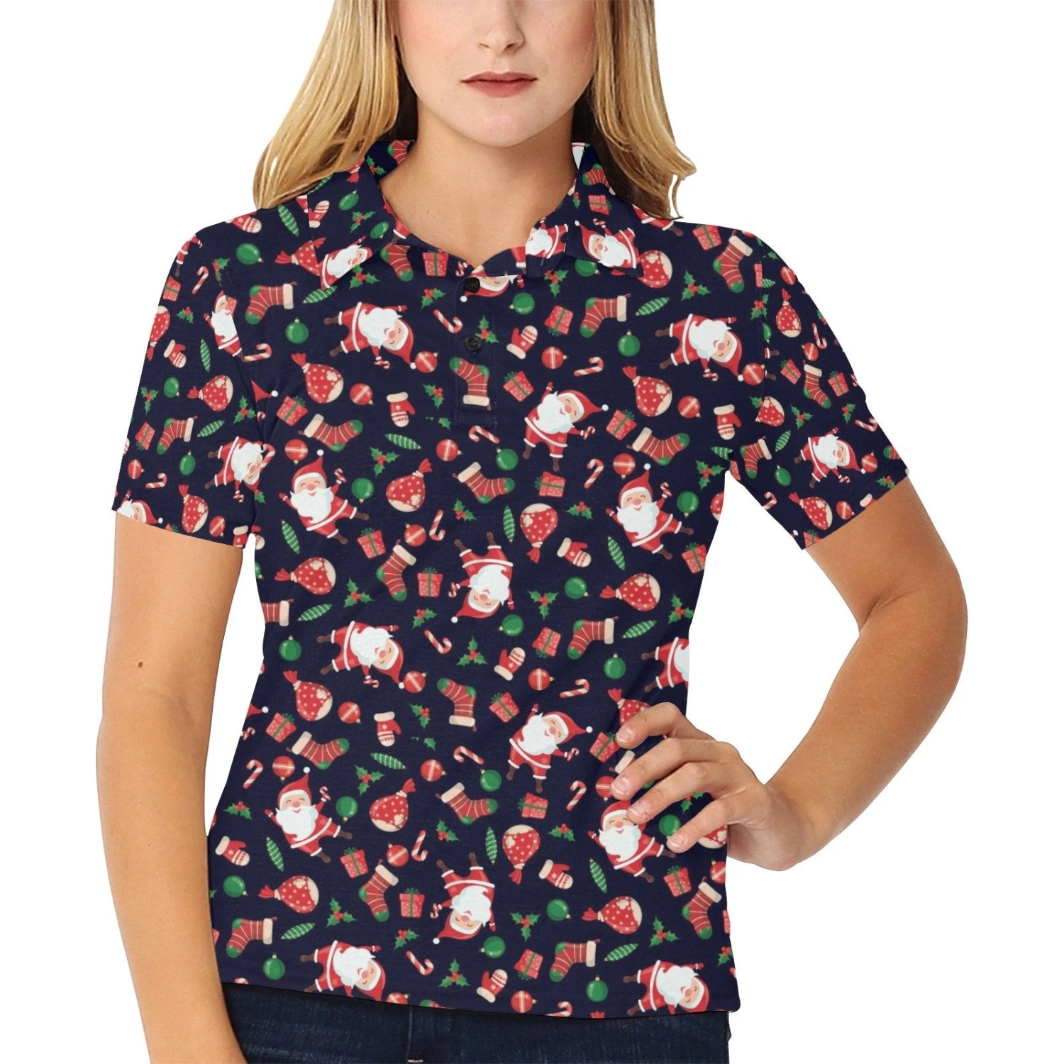 Santa Christmas Themed Print Design Women’s Polo Shirt 3D Polo Shirt A5 – Bluefink
